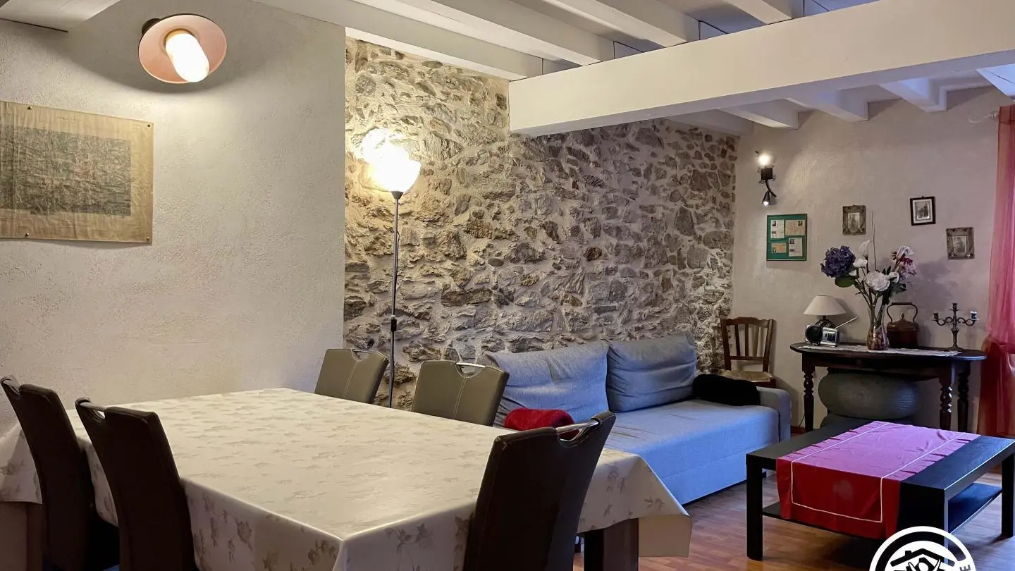 Maison mitoyenne datant du 17ème siècle, située dans la partie haute du typique village de Montségur. Rez-de-Chaussée : Buanderie servant de local de rangement et d'entrée. wc. A l'étage : cuisine intégrée et équipée, séjour avec coin salon. 2ème étage : 2 chambres mansardées avec 2 lits 1 place et 1 lit 2 places. Salle d'eau avec wc. Accès Internet. Chauffage électrique. Poêle à bois (bois offert). Équipement bébé. Toutes les charges sont comprises (bois, électricité, draps, linge de toilette, linge de maison, service de ménage en fin de séjour). Parking privatif et terrasse semi-couverte (30 m2) avec cuisine d'été .